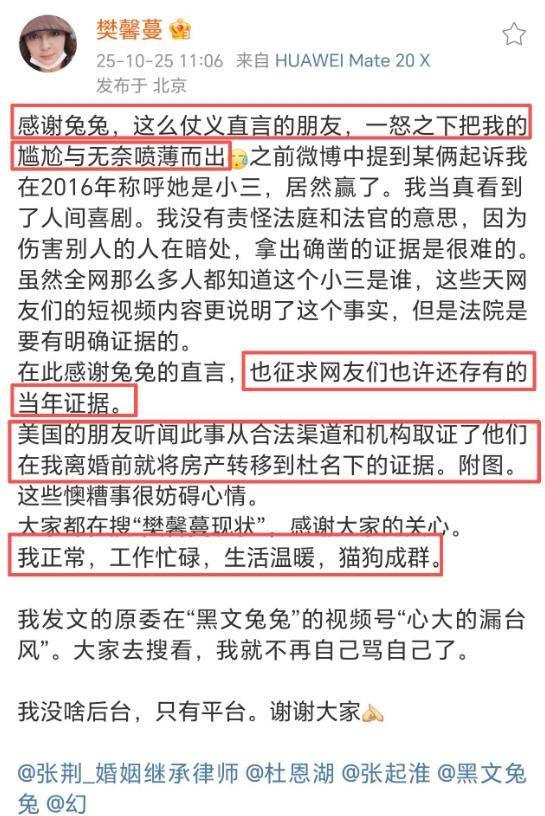 离婚9年后,樊馨蔓再爆猛料,甩出关键“铁证”。