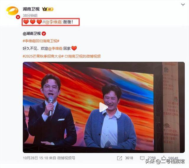 而就在10月28日,他终于得到了老东家湖南卫视的正名。
