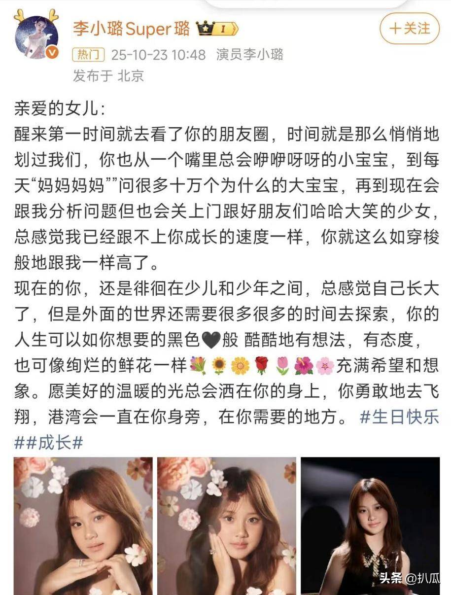 与此同时,甜馨妈妈也发布了一篇长文来表达对女儿成长的感慨与祝福,