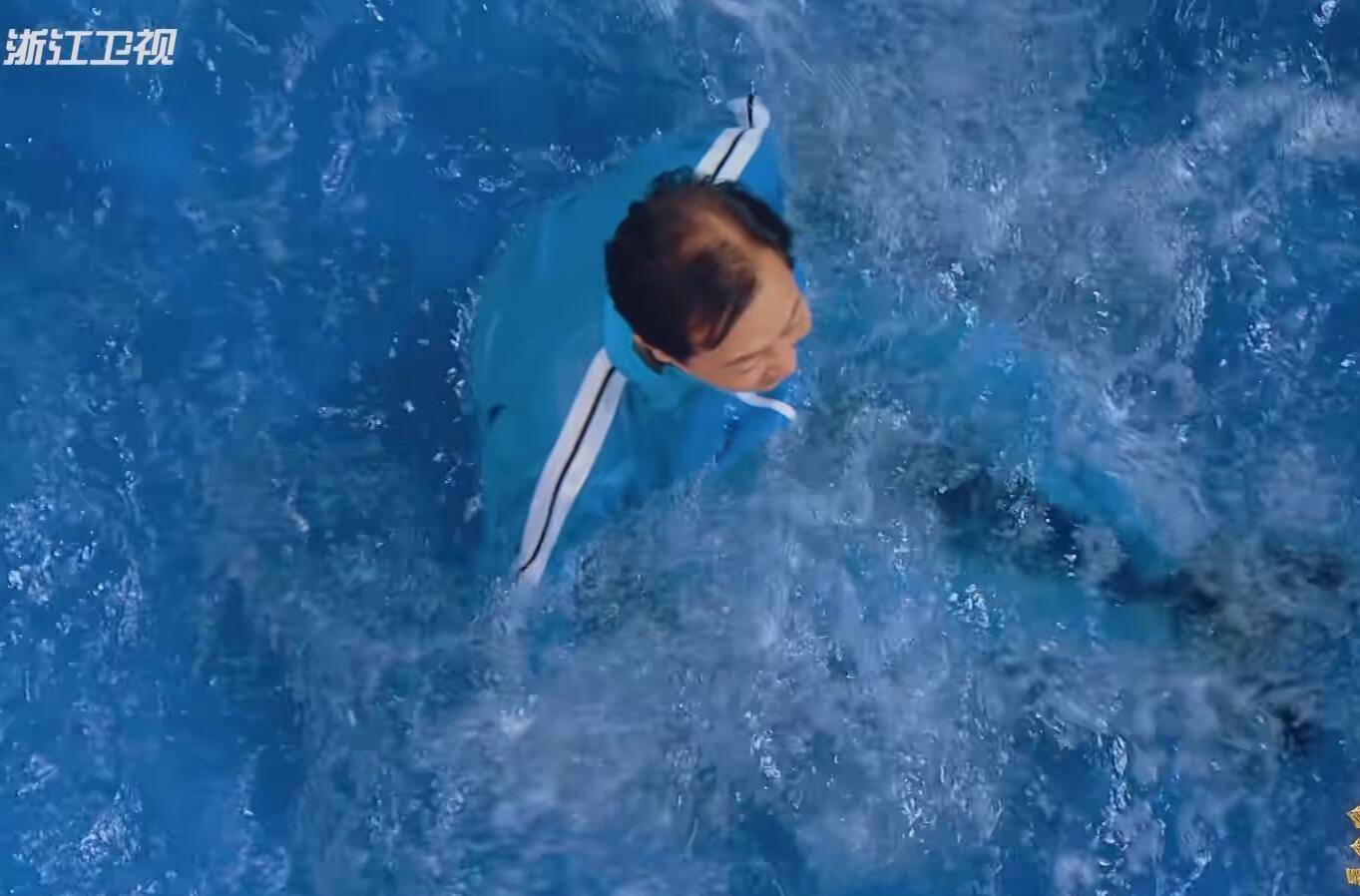 这次的泳池惩罚,唐国强输了之后没有丝毫犹豫,直接就向后倒下去了。