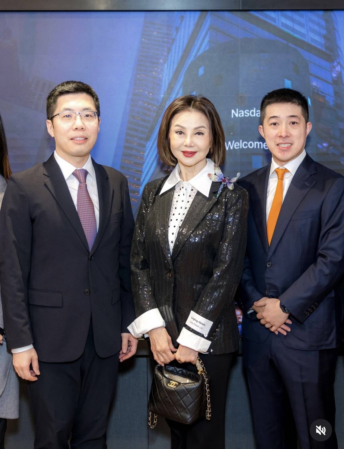 谢玲玲虽然自谦是小股东,但是在场内的地位也是相当尊贵,在她身边还有不少打扮贵气的阔太们,想必她们也是股东,不过站位都不如谢玲玲靠中,而且也没有能与主席合照。在纳斯达克敲钟之后,众人又到纳斯达克户外能够看到上市企业的标志性建筑物前合照,谢玲玲依然位居在中间的位置。谢玲玲当天是一副职业女强人的装扮,上身是亮面西装外套,下身是长裤,这一身装扮气场十足,范儿也十足,因为穿了高跟鞋,在一众男士中显得高挑,有型。