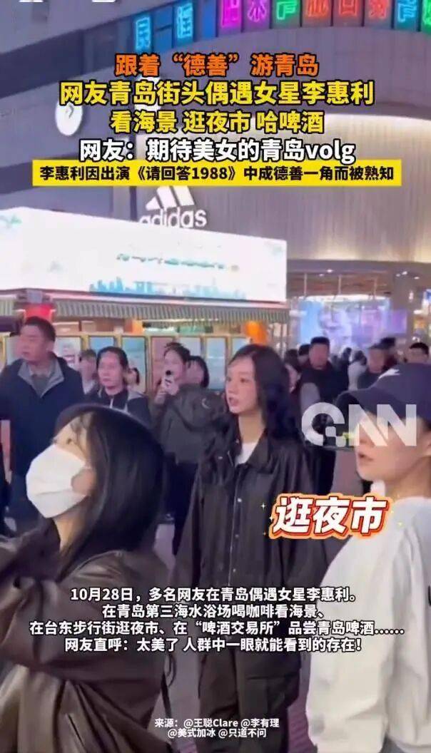 与许多前呼后拥的明星不同,李惠利此行可谓低调到了尘埃里。没有保镖环绕,也没有刻意遮掩,仅以一身休闲装扮融入青岛的街巷人流。在夜市里边逛边吃,在酒馆里因小酌而“脸蛋红红”,这份毫无架子的亲和力,让无数中国网友直呼“德善走进了现实”,感叹她接地气的态度再次强化了公众好感。