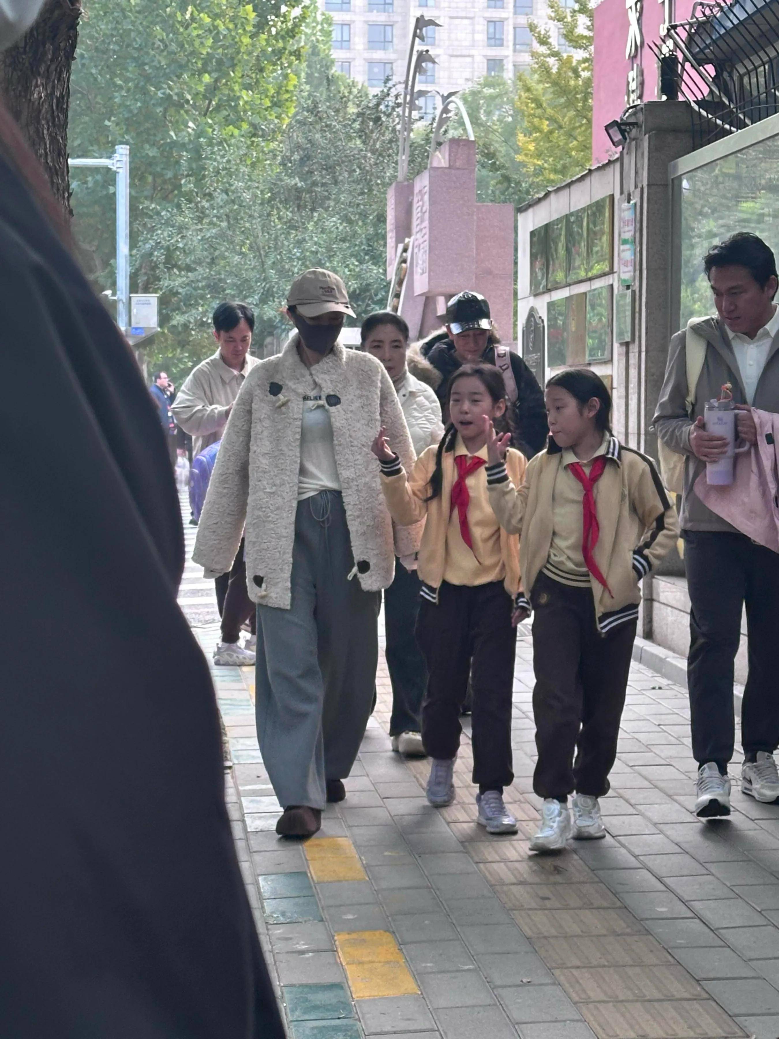 昨日,又有网友在学校门口偶遇董璇接小酒窝放学。只见董璇戴着帽子和口罩,打扮低调,细心守护着女儿。小酒窝则兴奋地紧挨妈妈,不停讲着学校里的趣事,活泼可爱。