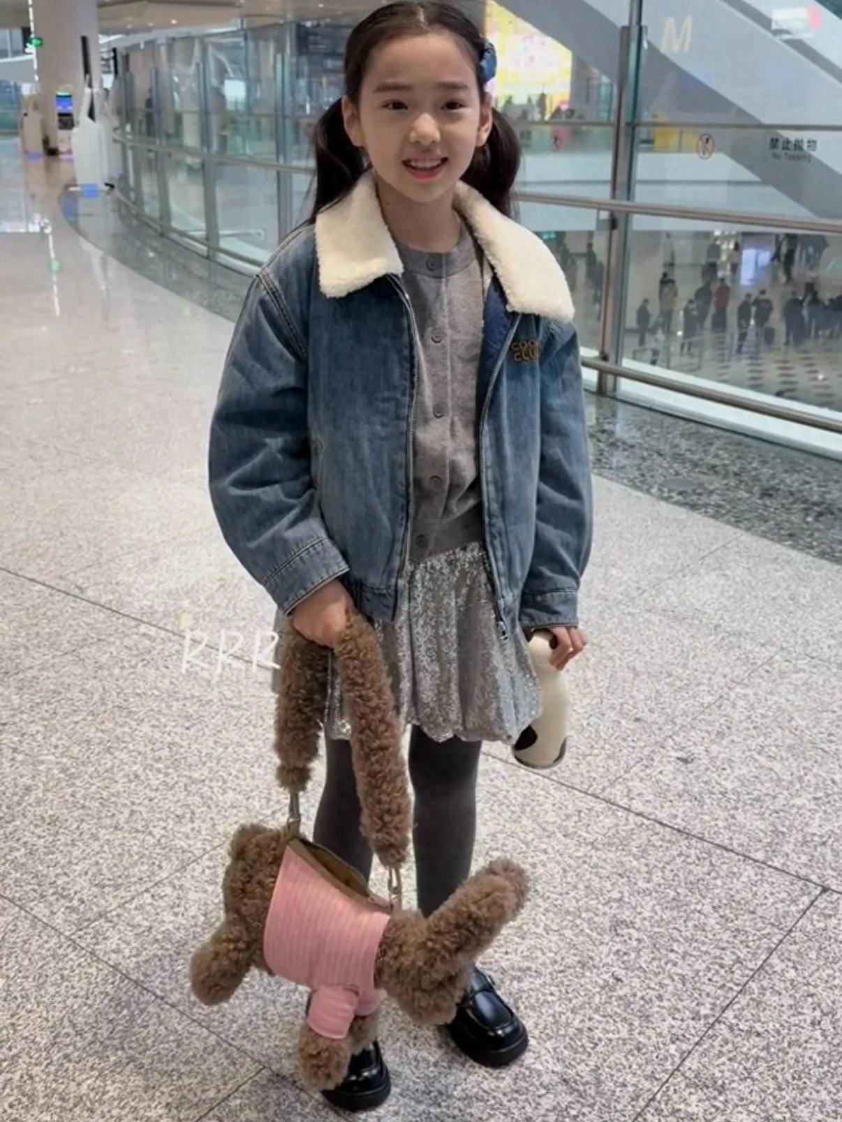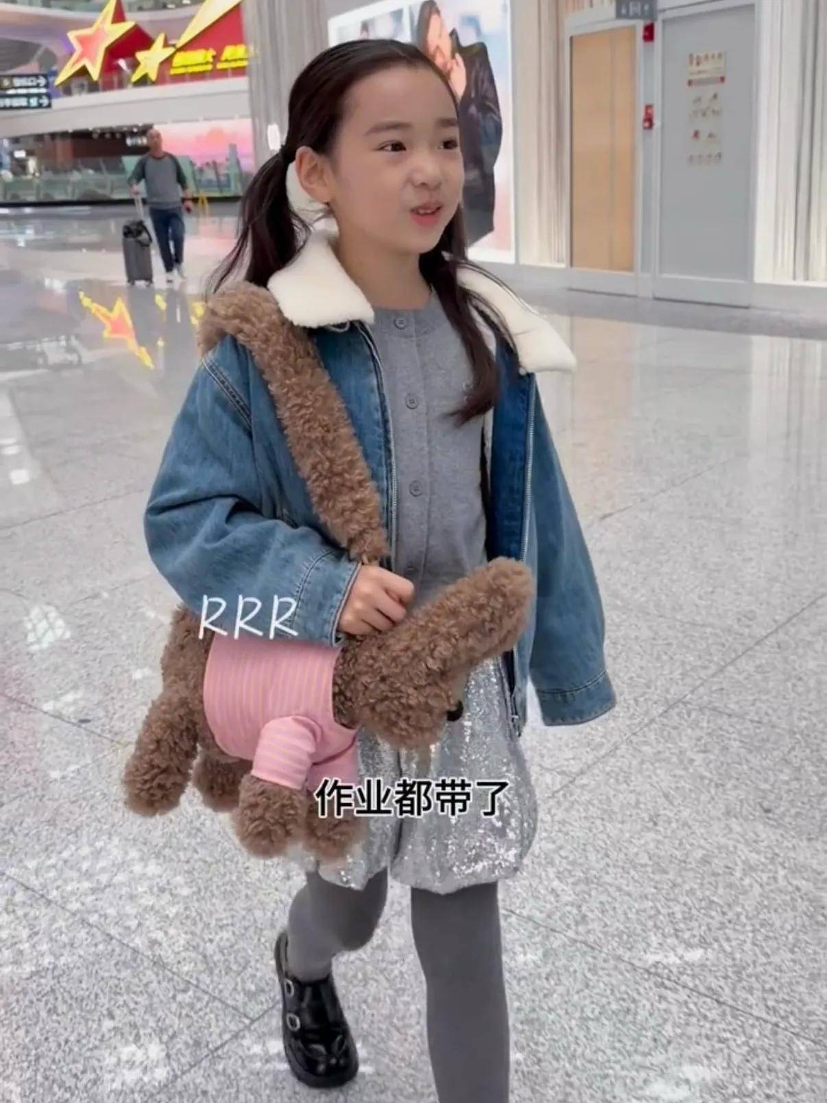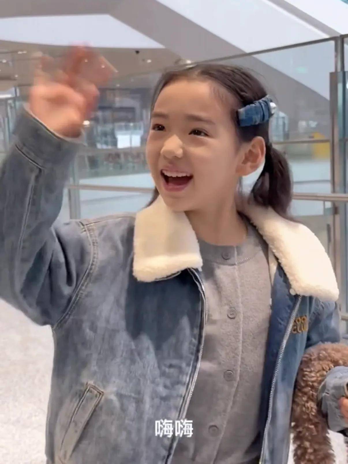 当天,小酒窝扎着双马尾,身穿牛仔外套搭配银色亮片裙,背着一个毛茸茸的小包,整个人甜美靓丽,十分惹人喜爱。因常飞机场,她和许多摄影师都相处得很融洽,大家也都被她的可爱模样深深吸引。