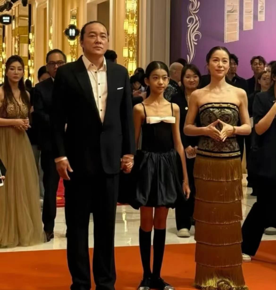 这张照片是不是他们真实的合照,感觉他们的女儿已经不小,可能是十多岁左右,个子很高。