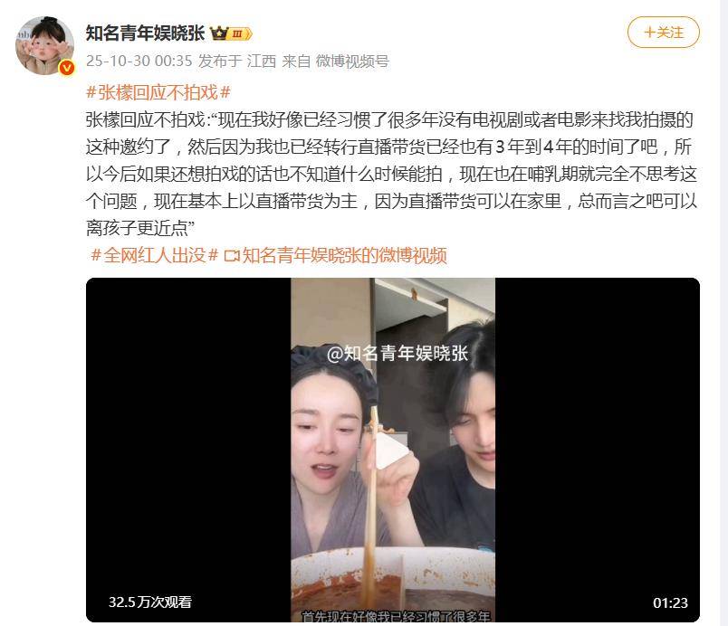 而真正让她做出这一选择的,是母亲的身份。正处于哺乳期的她直言,直播带货最大的优势就是可以居家完成,免去了剧组奔波之苦,能与孩子朝夕相伴。相比之下,拍戏需要离家,这与她现阶段的育儿需求产生了根本冲突。尽管她没有完全关闭未来拍戏的可能性,但也坦言复出只能被动等待邀约,并且哺乳期内完全不会考虑这个问题。