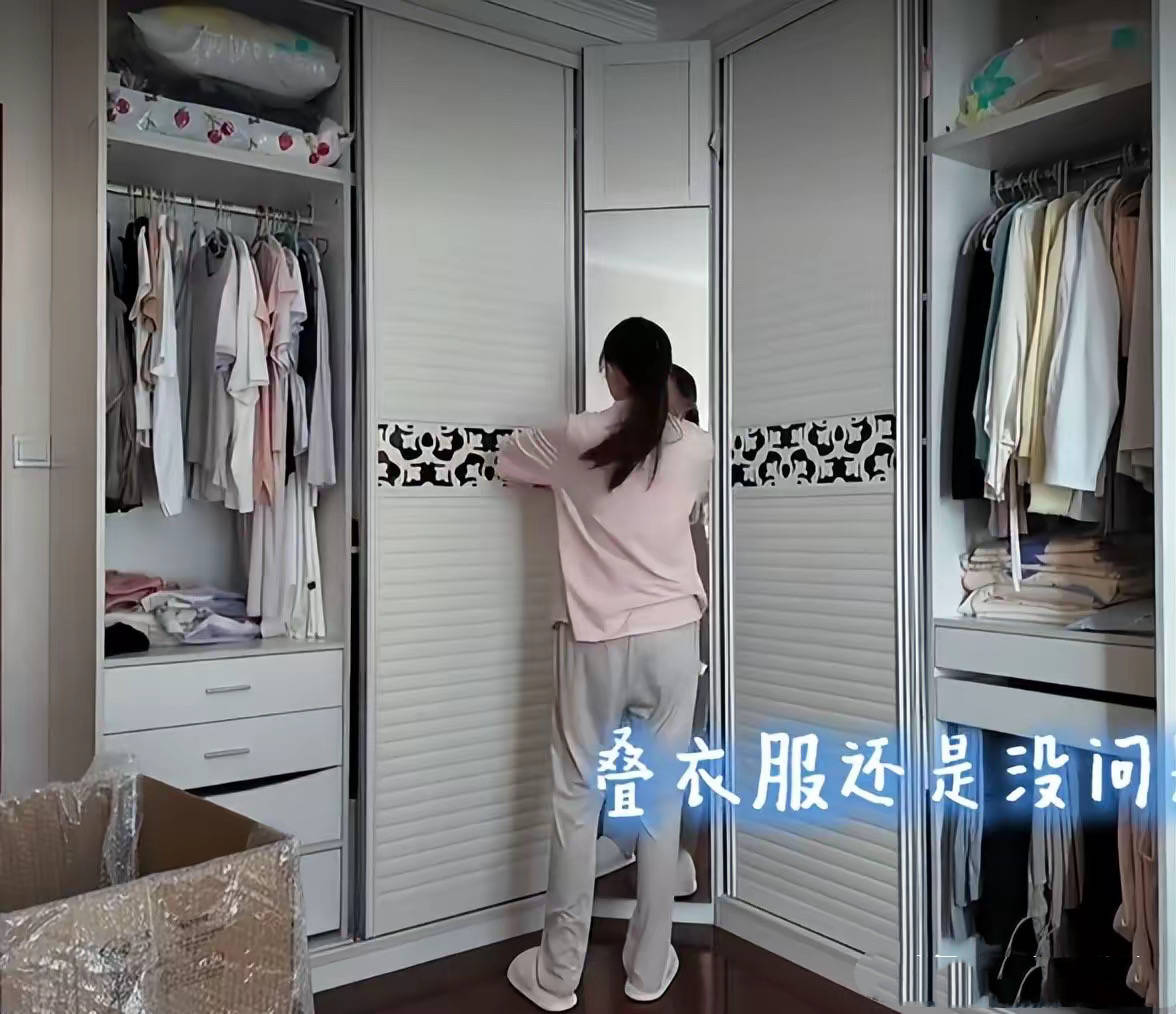 卧室里选择了木地板,但面积也不是很大。整体空间感比较局促,而从水亦诗的衣橱来看,她的衣服也不是很多。