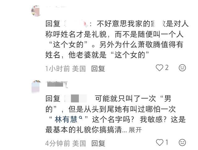 向太说萧敬腾就用本名,提到林有慧却用“这女的”代替,令人感觉向太有些不尊重人。