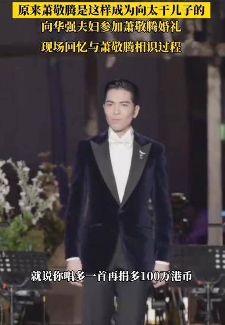 当天还是向华强生日,喝酒喝高兴的他,对正在台上献唱的萧敬腾豪爽“开价”:“你多唱一首,我多捐100万!”
