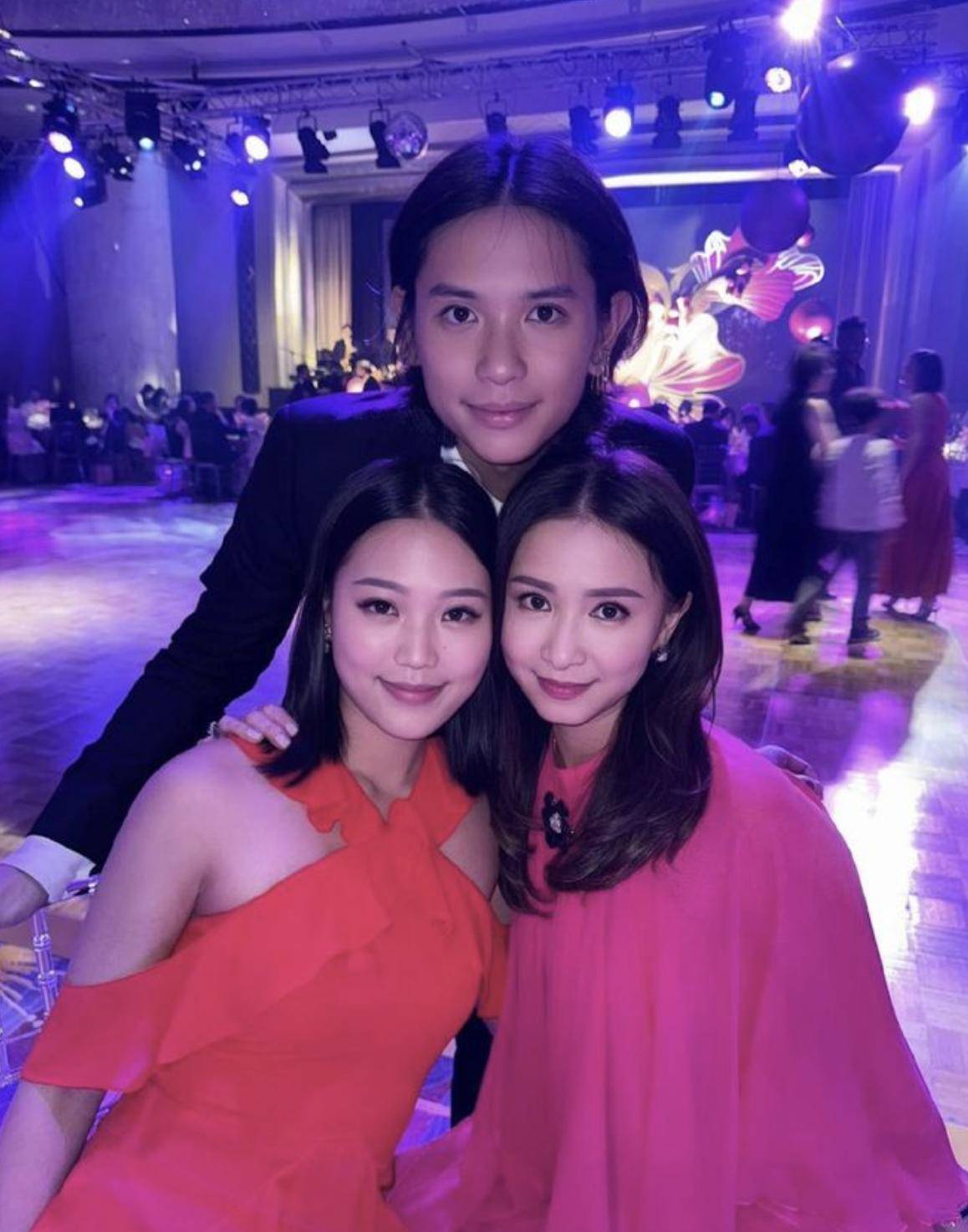 而站在霍咏盈旁边的胡智略也同样不失色,不是因为他站在中间——他站在中间因为是主家,而是因为他身材还相当高挑。胡智略当天穿了西装三件套,一身褐色的西装配上他挺拔的身材,有型有款。胡智略的身高的确出众,霍咏盈穿了高跟鞋也只是到他耳根的位置,而比起其他同场的男性友人,他同样是显得瞩目,再加扎起了及肩的长发,脸蛋还很显小,相当秀气。胡智略的长相柔美,完美遗传了母亲吴婉芳的颜值,是吴婉芳的三个孩子中,长得最像她的一个。
