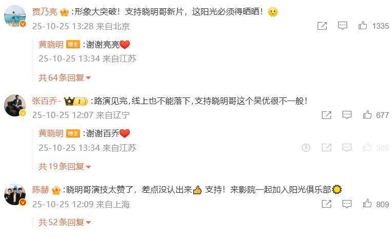 黄晓明昨天发文官宣自己的新片《阳光俱乐部》上映,用上了自己在娱乐圈的人脉,数十位明星赶来评论。像陈赫、张百乔之流不太红的明星,在他刚发文不久就火速赶过来评论,轻松抢到