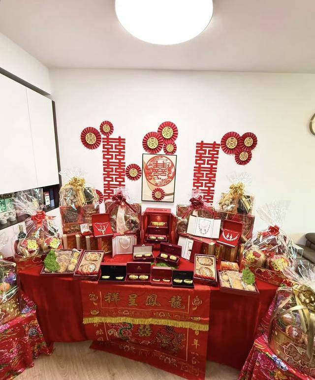 近日,容天佑再次向网友们分享了好消息,原来他已经成功完成了过大礼的环节,从其晒出的动态中看得出,这次容天佑也是花了重本,他准备了八对龙凤手镯,还有各种鲍参翅肚以及心形的花胶。