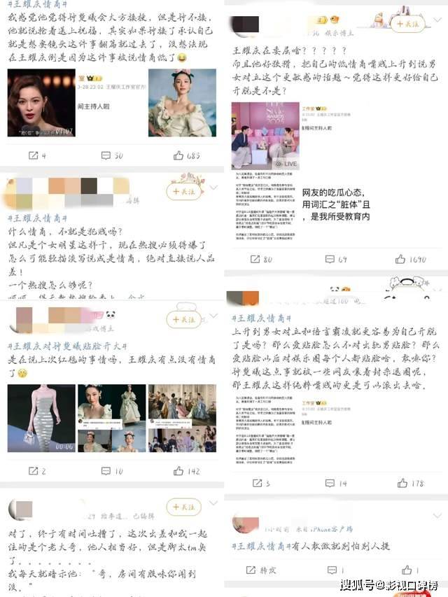 虽然作为艺人来讲,渴望关注度没错,主动占领对自己有利的位置也没错。错就错在她的咖位相较于同场女明星来讲,占据着中间位置显然不具备说服力。而王耀庆团队的危机响应滞后且策略失当,会造成舆论反噬也是意料之中。针对王耀庆内涵钟楚曦事件也有部分声音指出,男艺人行为通常被冠以“情商”讨论轻飘飘的揭过。