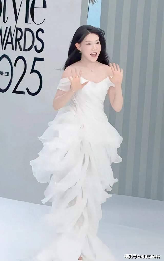 最让人感到意外的是,马伊琍留着一头直发,很贴头,戴着长耳环。她穿着抹胸条纹拖地长裙,黑白颜色,看起来好像“斑马”似的。她穿这条礼裙,既不时尚,也不优雅。