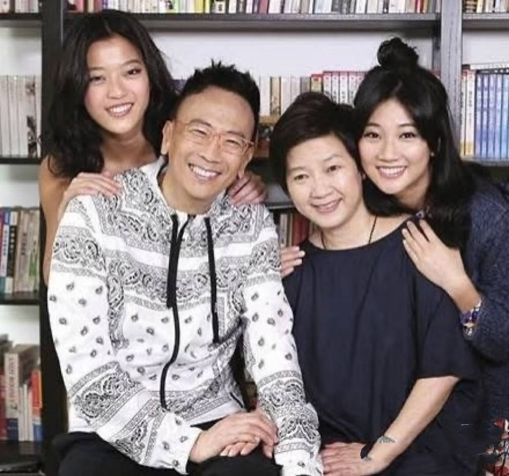郑丹瑞一家人的合影,两个女儿简直共用一张脸、也长得太像了吧。大女儿皮肤稍微白皙一些,小女儿有点美黑的感觉。