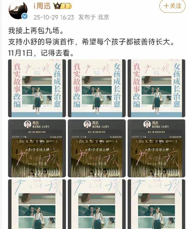 周迅、陈坤作为舒淇的多年好友,更是早早就发文为《女孩》做宣传,每人还豪气的各包了9场电影。