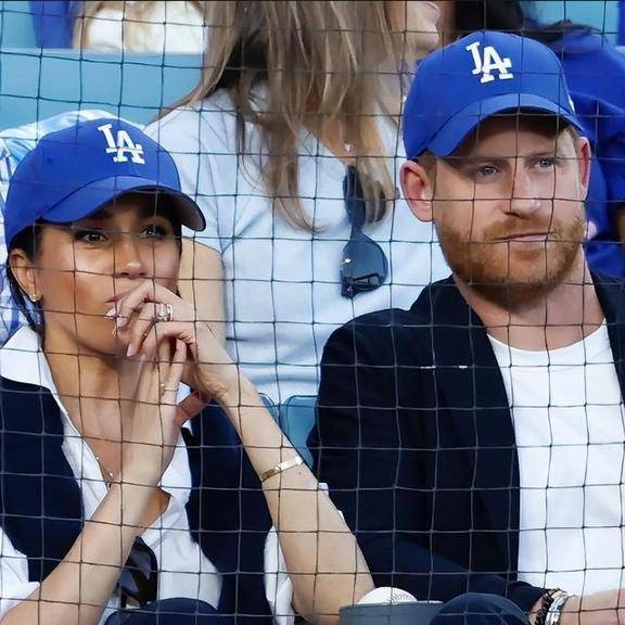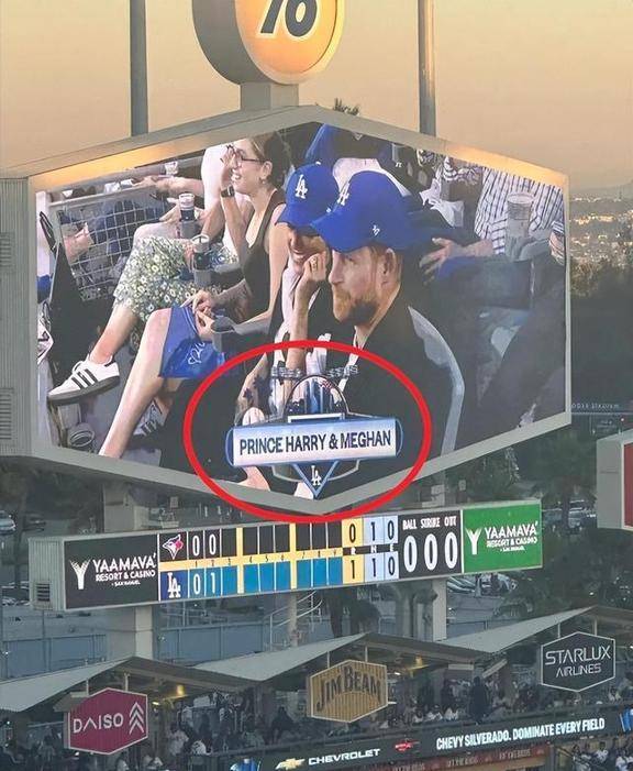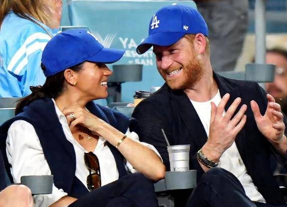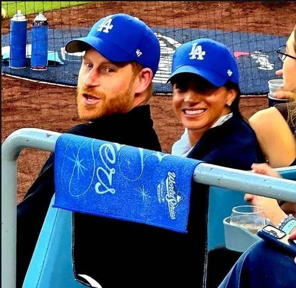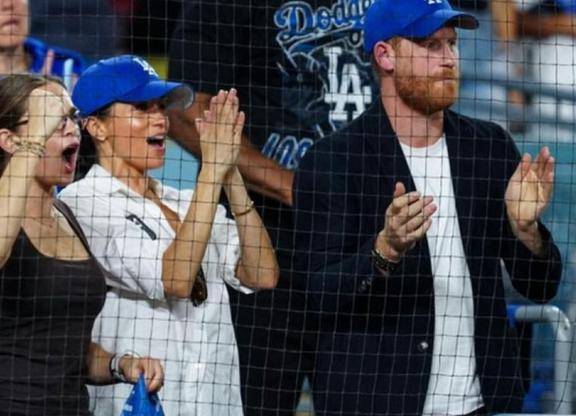 不过在看棒球赛的时候,发生了一件有趣的事,电视直播镜头正好抓拍到哈里和梅根在看台上,给了他们一个特写镜头。