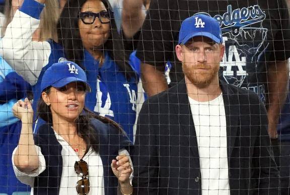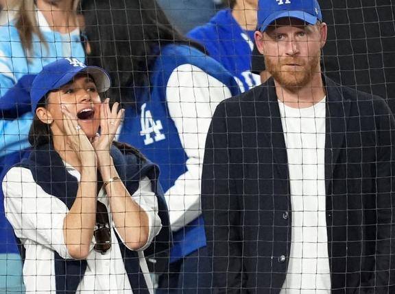 梅根和哈里手拉手去享受二人时光,去了看棒球世界大赛,打的是多伦多蓝鸟队对洛杉矶道奇队的第四场比拼。