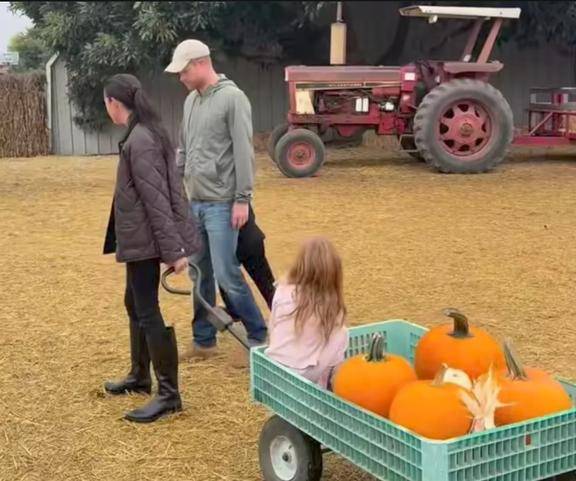 最近哈里和梅根没啥事,夫妻俩就带着两个娃,阿奇和莉莉贝,去南瓜地里玩了一圈,挺欢乐的。