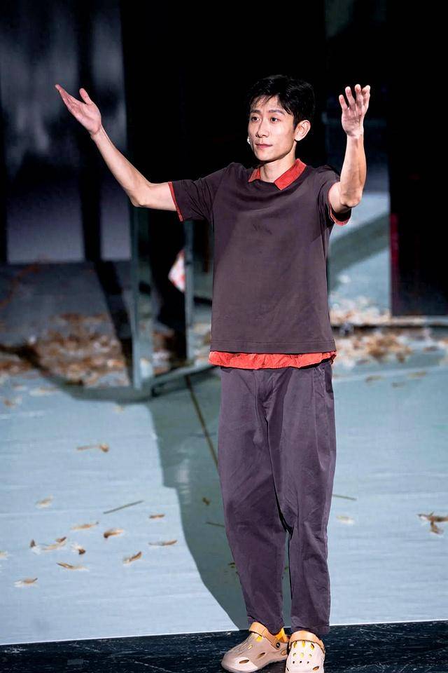 他这回是真不声不响地杀了个回马枪:话剧《一地鸡毛》,整整一个多小时全靠他一人撑场,角色切换得像变魔术。