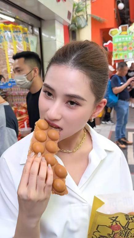 刚出炉的鸡蛋仔,她拿过来就趁热吃,