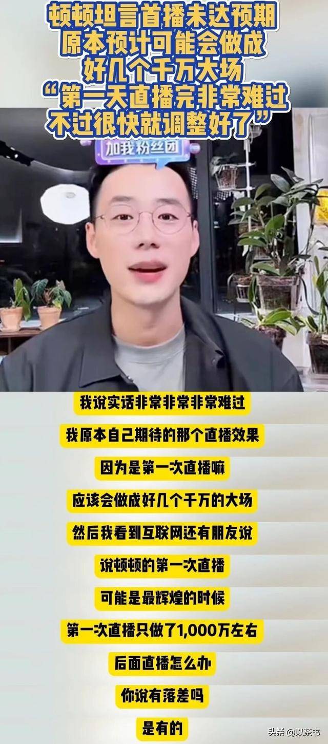 顿顿单干后首场直播两天卖了近1250万,客单价280元,看起来风光无限。