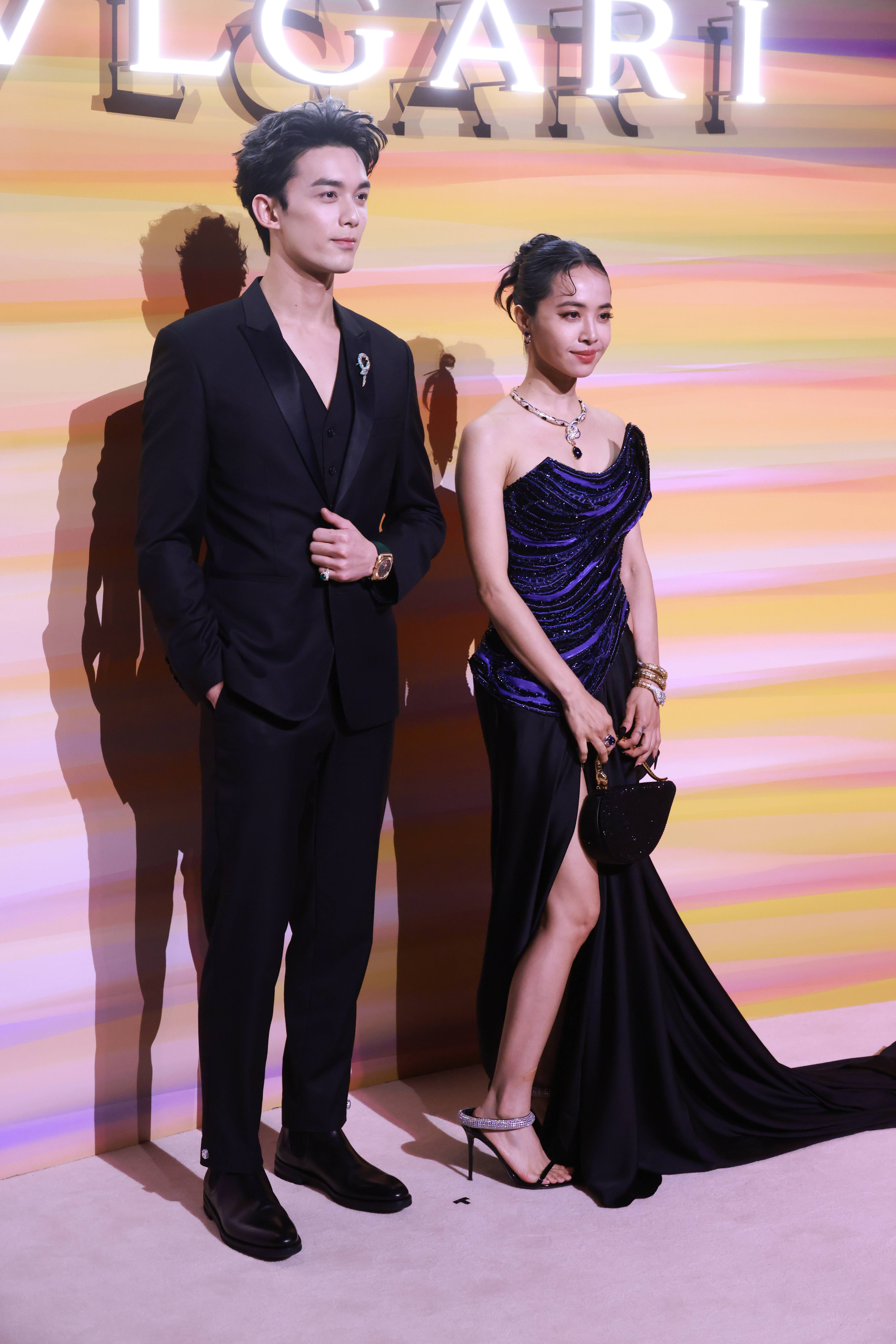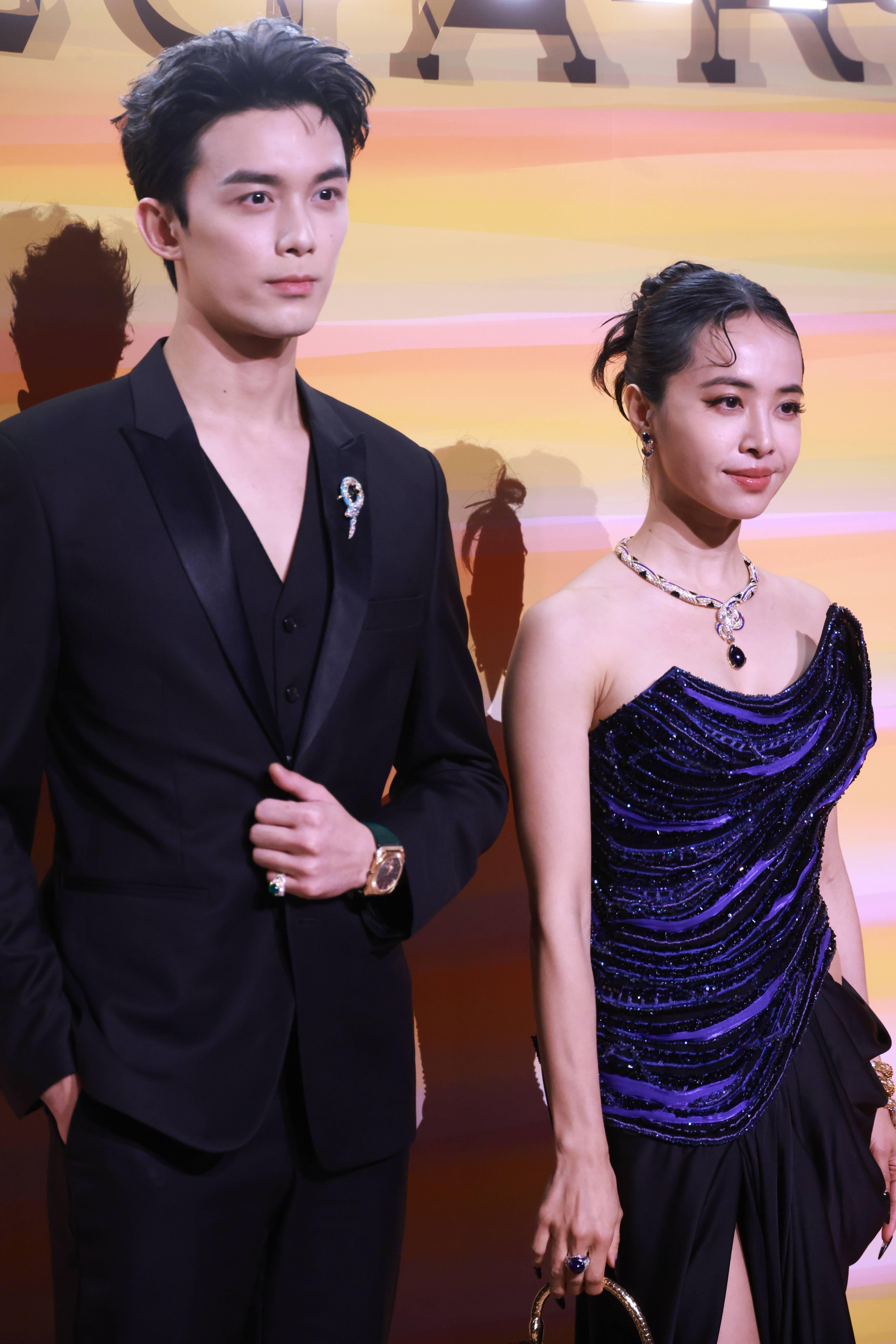 蔡依林身穿蓝色抹胸拼接礼服搭配珠宝,优雅高级;吴磊则是黑色深V西装LOOK搭配胸针和腕表,绅士贵气。现场,蔡依林与吴磊同框,妥妥的豪门姐弟既视感,饱赚眼球。