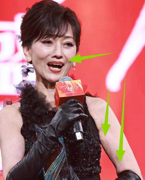 其次,赵雅芝的脸上也满是皱纹,眼角处的鱼尾纹、鼻子嘴巴两边的法令纹,皱的都快看不到赵雅芝原本的样貌了。