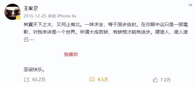 在此期间,王家卫立马站队,表达了自己的看法——我喜欢。