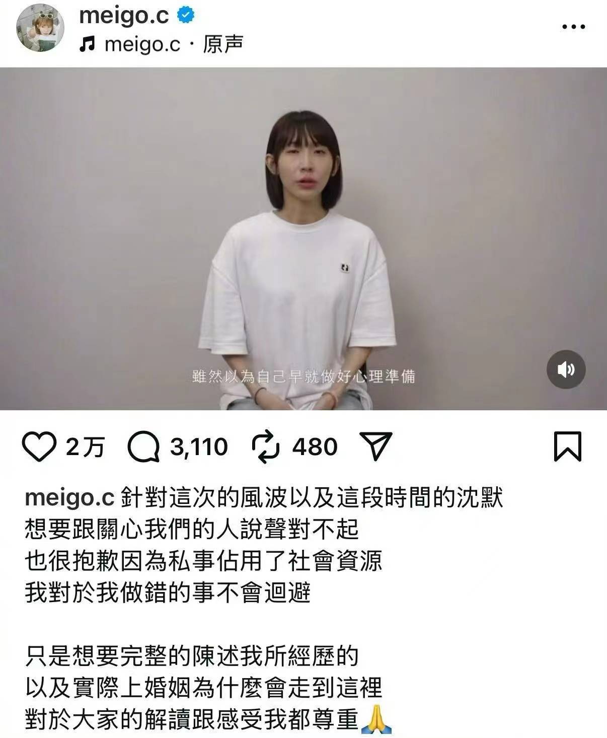 只是想要完整的陈述她所经历的,以及实际上婚姻为什么会走到这里,对于大家的解读跟感受她都尊重。