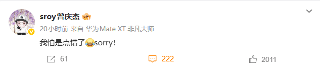 据悉,此前于正在直播中公开夏之光《金吾不禁》相关造型引发网友吐槽,随后曾庆杰在社交媒体转发吐槽内容后删除,并回应称“我怕是点错了,sorry!”