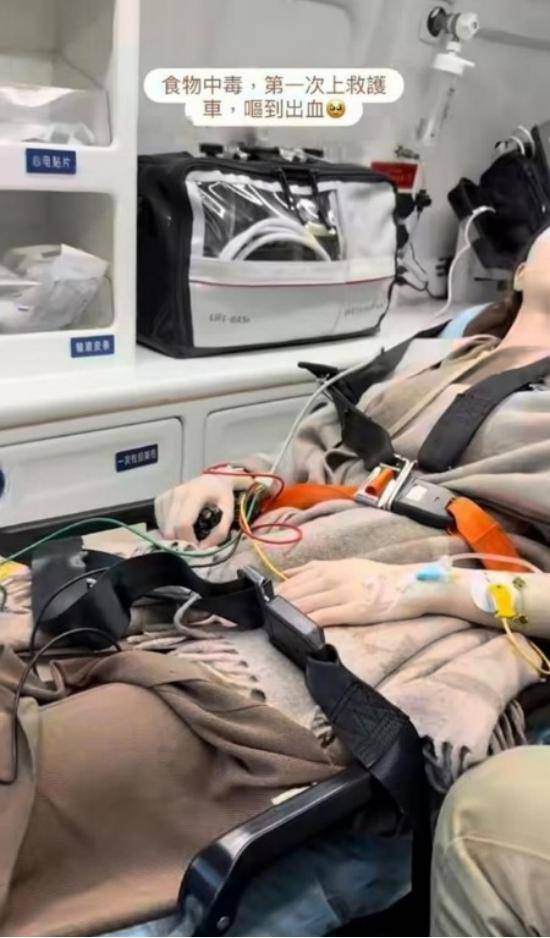 近日杨帆更新其社交动态,上载了一张她在救护车上的照片,据杨帆透露,她因食物中毒紧急就医,病情十分严重,一度吐到呕血。
