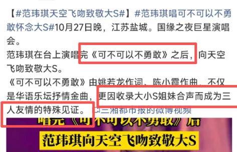 她这场演唱会没有特意设立纪念大S的环节,但也有些温暖的小心思,比如在唱象征她和大小S友情的歌时,她面朝天空抛了个飞吻。