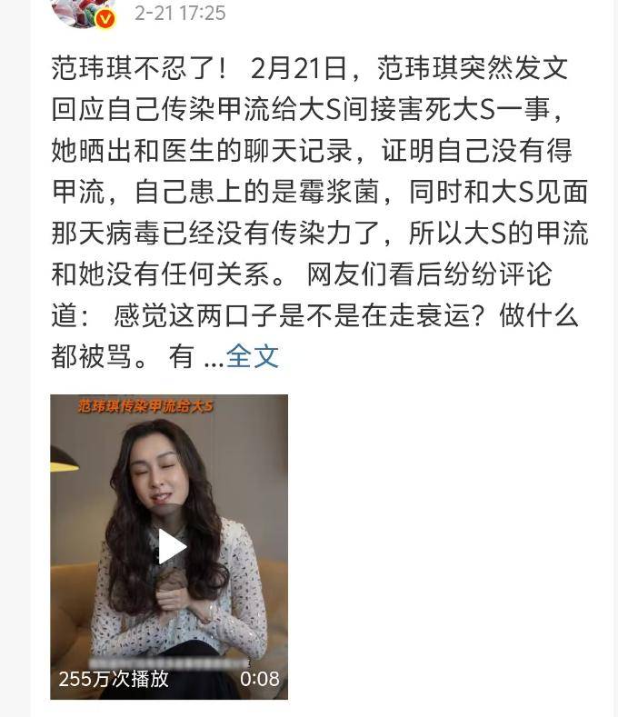 范玮琪不得已晒出病例单,证实她患的病和大S患的流感不是同一种,大S的病也不是因她而起的。