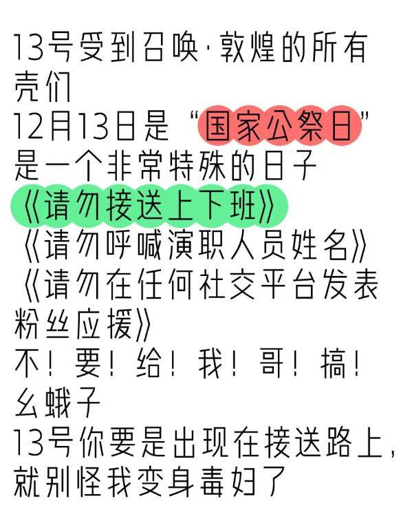 可不少粉丝看到合体时间以后头都大了,因为12月13日恰好是国家公祭日。