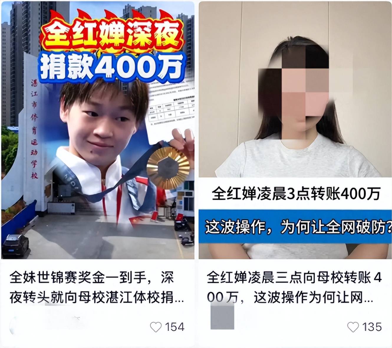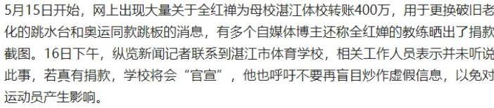 湛江体校直接发文澄清:“我们从没听说全红婵捐款的事,网传的感谢信和截图都是假的。”