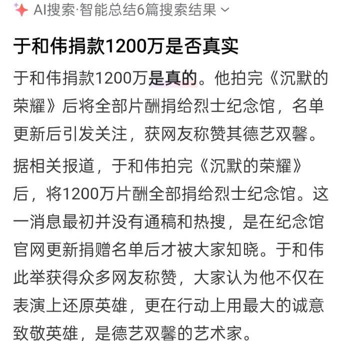 一条 “于和伟捐献千万片酬” 的消息,在网上疯传。
