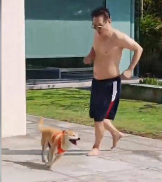 由于最近忙于工作很少回家,这次回来,李连杰专门陪着宠物狗“多多”玩了起来,跑起步来健步如飞,完全不像是60岁老头的样子。