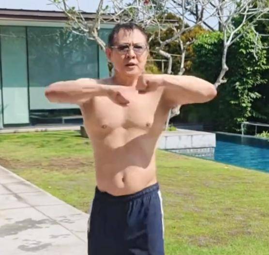 为了“自证清白”,杰哥直接光起了膀子,在自家豪宅里面游泳。
