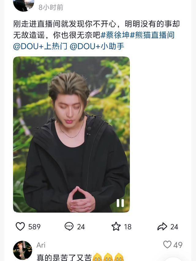 蔡徐坤方没有针对这些传闻回应,但在最新的商务活动直播间,却把愁容写在了脸上,对比起他自己的上一次直播,看起来落差格外的大。