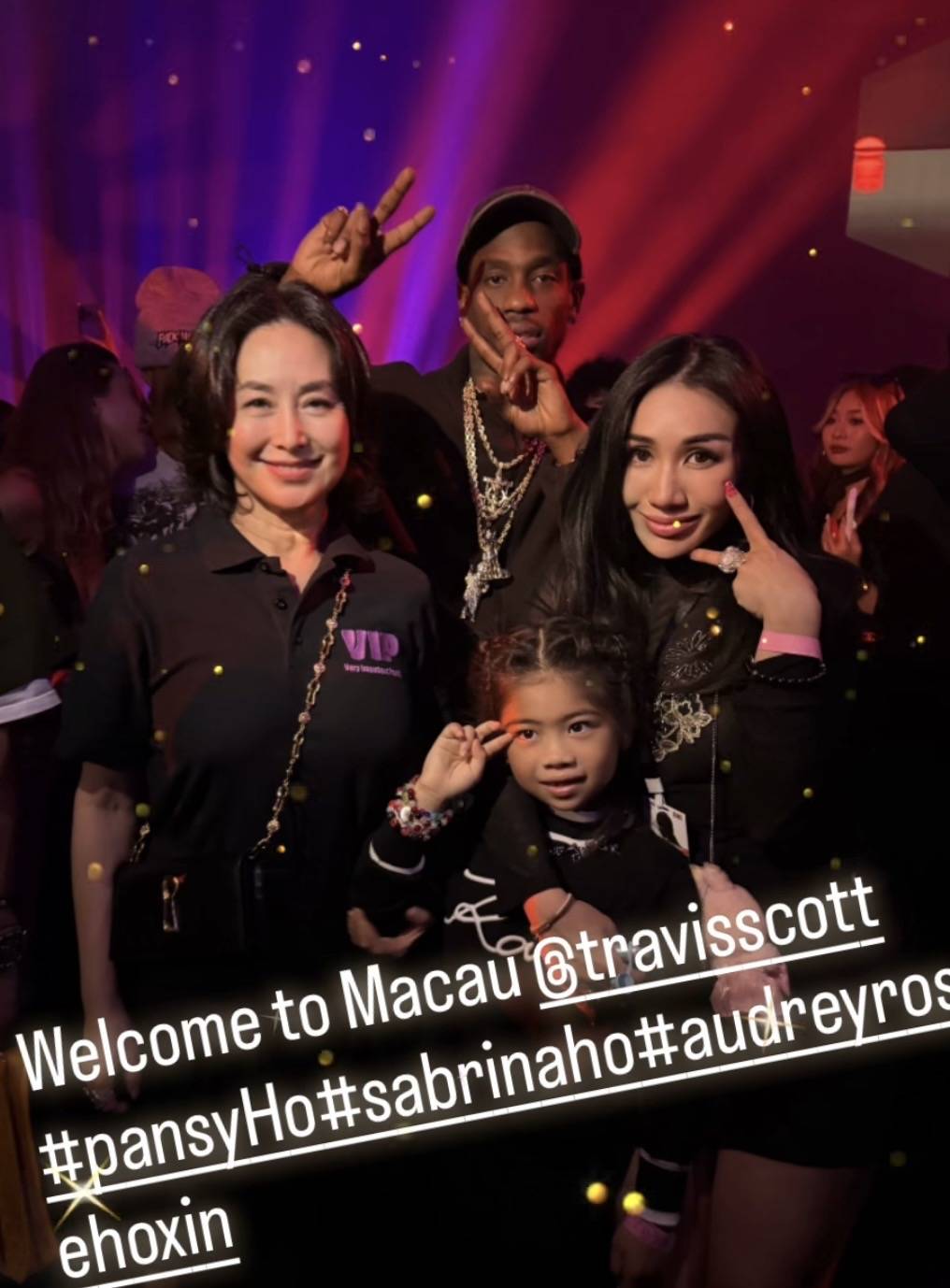 美国说唱歌手Travis Scott(特拉维斯 斯科特)在澳门有特别演出,引发香港名人齐聚澳门,其中不少喜欢观看演出,热衷凑热闹的名媛都到场观看,还通过特别的渠道得以与斯科特合照。在现场就看到了莎莎儿媳妇江玉珏,曾文豪的长女曾昭怡,林建岳的儿子,另外何鸿燊家族的何超琼也在场,罕见的是四房女儿何超盈也带着女儿一起观看演出,母女还与斯科特一起合照留影,而何家大房孙女何家华也在。