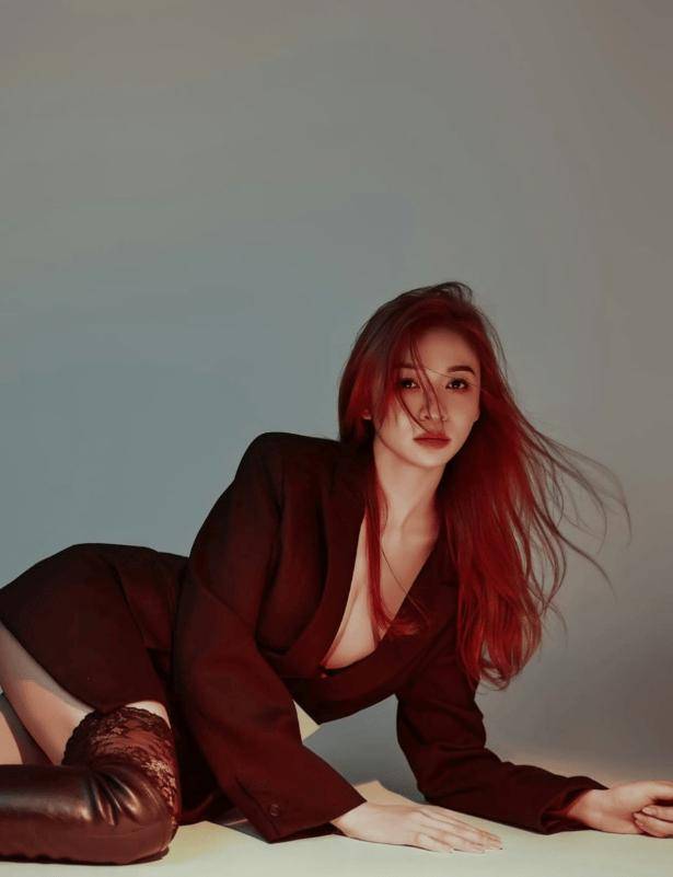 这组照片充分展现了她的性感魅力,超短裤搭配黑色蕾丝丝袜和长靴,露出大白腿。她时而趴地,时而跪地,摆出各种姿势!