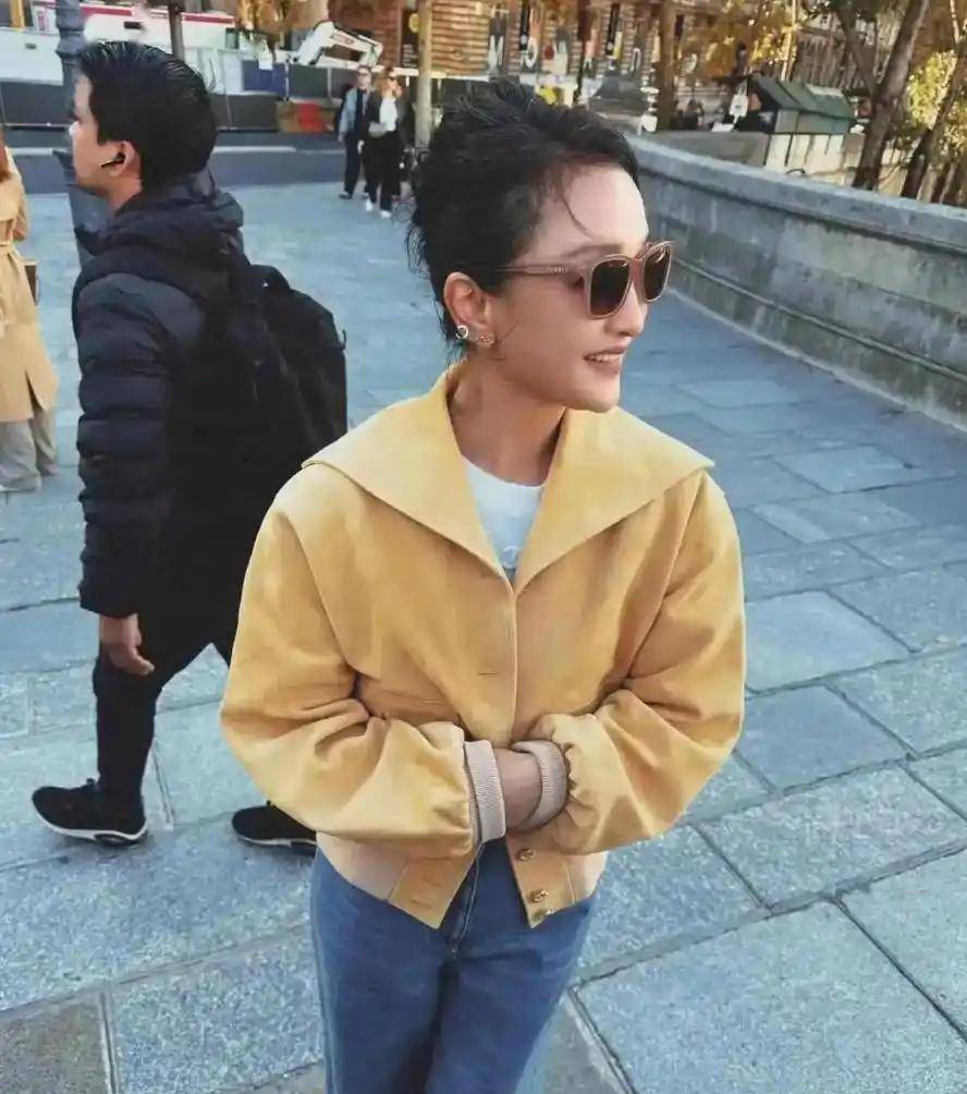 今年巴黎时装周的明星街拍里,51 岁的周迅硬是靠 “不精致” 杀出了重围。有网友在巴黎街区偶遇她,镜头里的影后穿着件靛蓝色长外套,下身配条普通牛仔裤,脚踩小白鞋,鼻梁上架着副眼镜,完全没有其他明星 “武装到发丝” 的紧绷感。