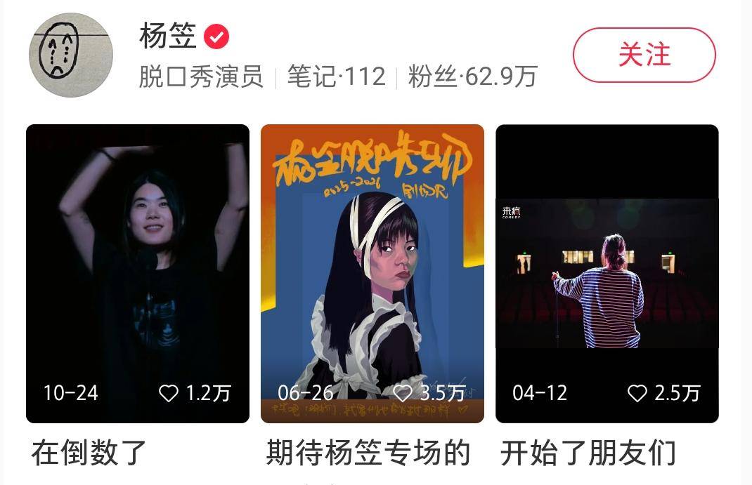 与此同时,杨笠另一个平台保留了112篇内容,上个月24号还更新了自己的演出照片,看起来像只是在筛选平台,并没有退圈的意思。但有热心的粉丝称杨笠在该平台也多次删除内容,之前删除了一堆,一天前的深夜也删了几条,事情似乎又不是那么简单。