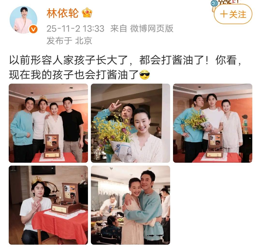 今年11月2日,林依轮夫妇分别在社交平台上发布动态,晒出全家福,为大儿子林子濠庆祝26岁生日。生日宴现场气氛热闹,一家人齐聚一堂,共同庆祝这一重要时刻。林子濠的五官越发显现出父亲林依轮的神韵,尽管如此,整体气质上仍略逊于帅气的父亲。
