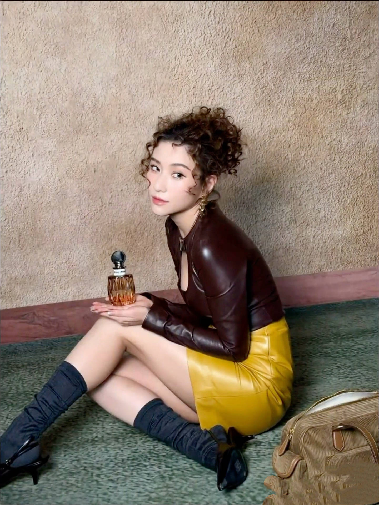 34岁的何超莲,走的是甜美青春的俏皮风路线。何超莲穿着领口挖空的上衣,配了黄色皮裙,格子外套,青春俏皮。