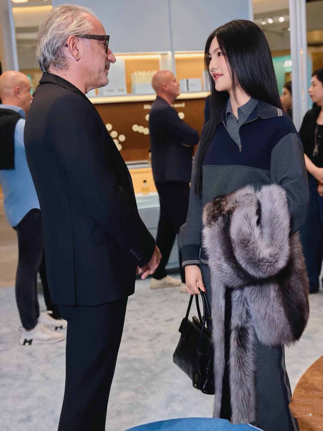 这一身黑色,本来就有点压抑,在王诗龄手里,还包了一条皮草围巾。不知道现在室内做活动,真的冷到这般境地了吗?