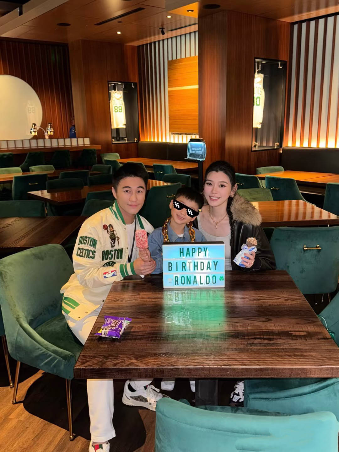 儿子生日的时候,一家人出席了晚宴,还和喜欢的球迷合影了。何猷君作为波士顿凯尔特人队老板,带着老婆儿子参加晚宴,也算是让儿子了解了自己的事业版图。