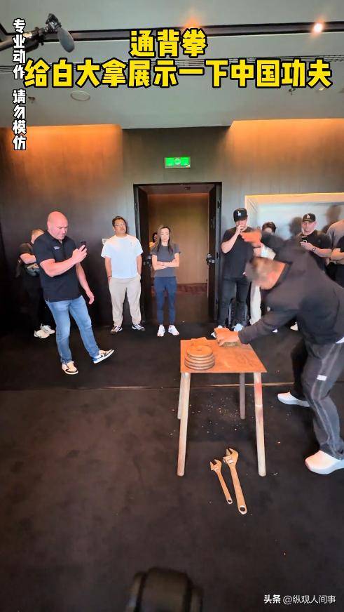 说起来,赵鸿刚在国内也算是非常厉害的一位了,他是第九代通背拳传承人,能徒手切断砖头,砸弯大扳手。