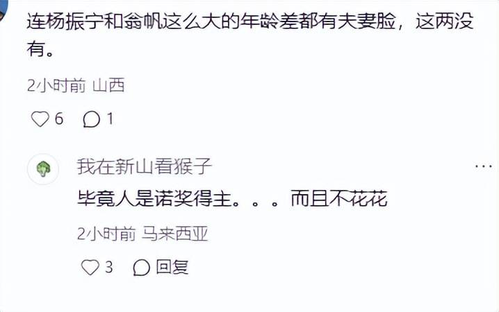 有网友因此拉踩起了杨振宁和翁帆,同样是老少恋,爱与不爱的差距真的很明显。